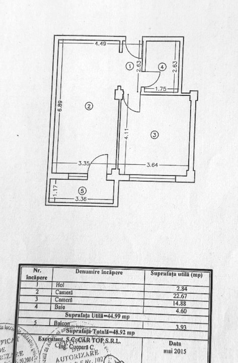 Suprafață utilă: 45 mp + 4 mp balcon = 49 mp