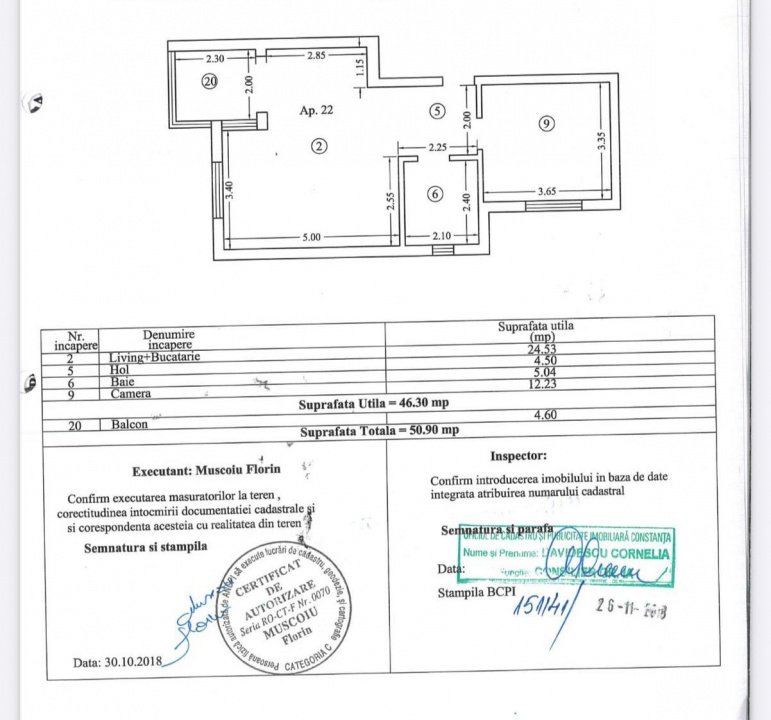 Suprafață totala: 51 mp din care 4,6 mp reprezinta balconul | 🛏️ 1 Dormitoare: | 🛁 1 baie