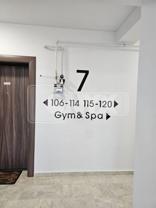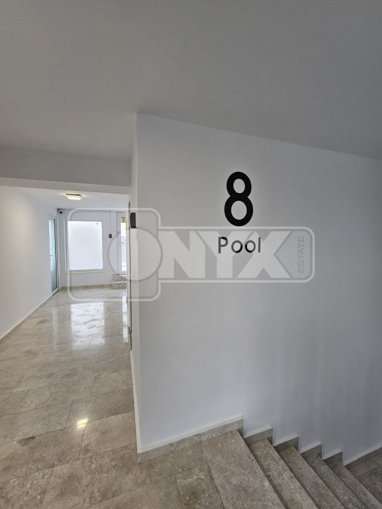 • Imobil: Interfon, Videointerfon, Lift, Spatii agrement, Sauna, SPA, Curte comuna, Piscina exterioara