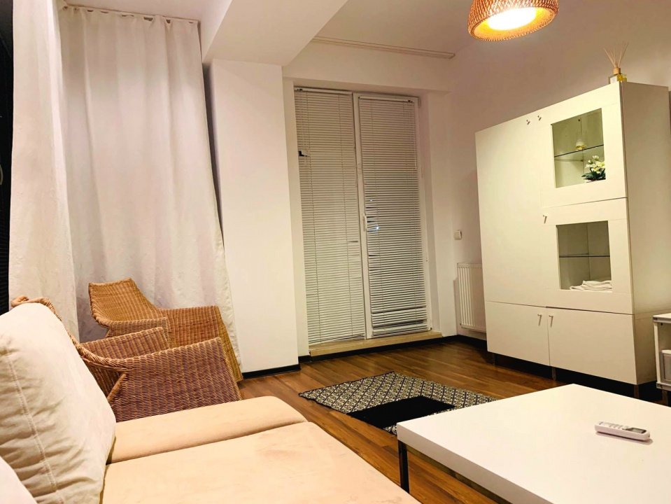 Situat la etajul 5, spațiul oferă intimitate și panorame spectaculoase. Bucătăria închisă, perfect delimitată, aduce funcționalitate, iar mobilierul și dotările moderne creează un ambient primitor. Centrala pe gaz asigură independență și eficiență în orice sezon.