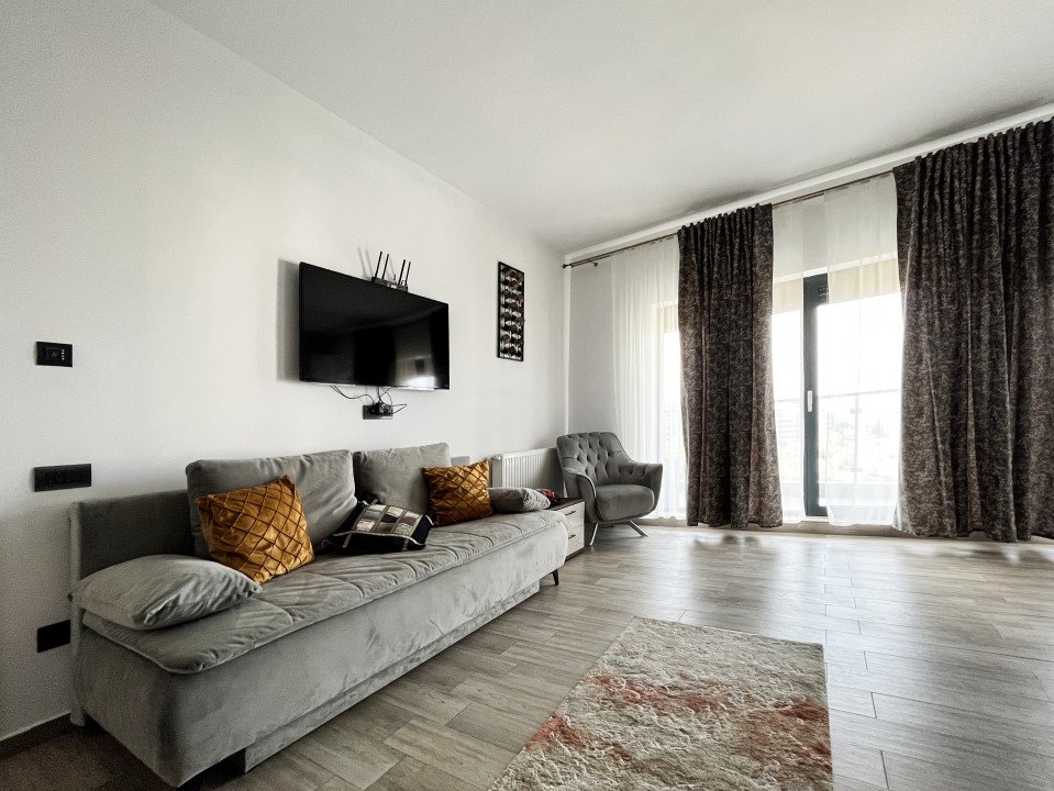 Living-ul, generos și plin de lumină naturală, reprezintă spațiul perfect pentru relaxare și socializare cu cei dragi.