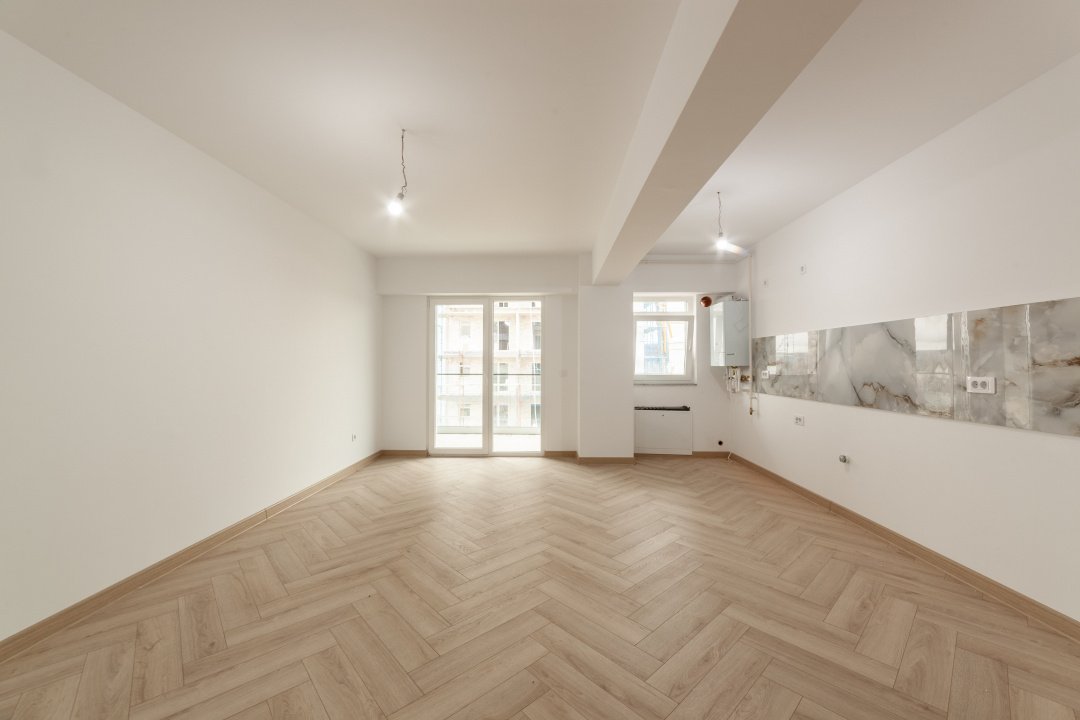 * Livingul cu bucatarie open-space este spatios si luminos, dormitorul bine proportionat, iar baia aerisita.