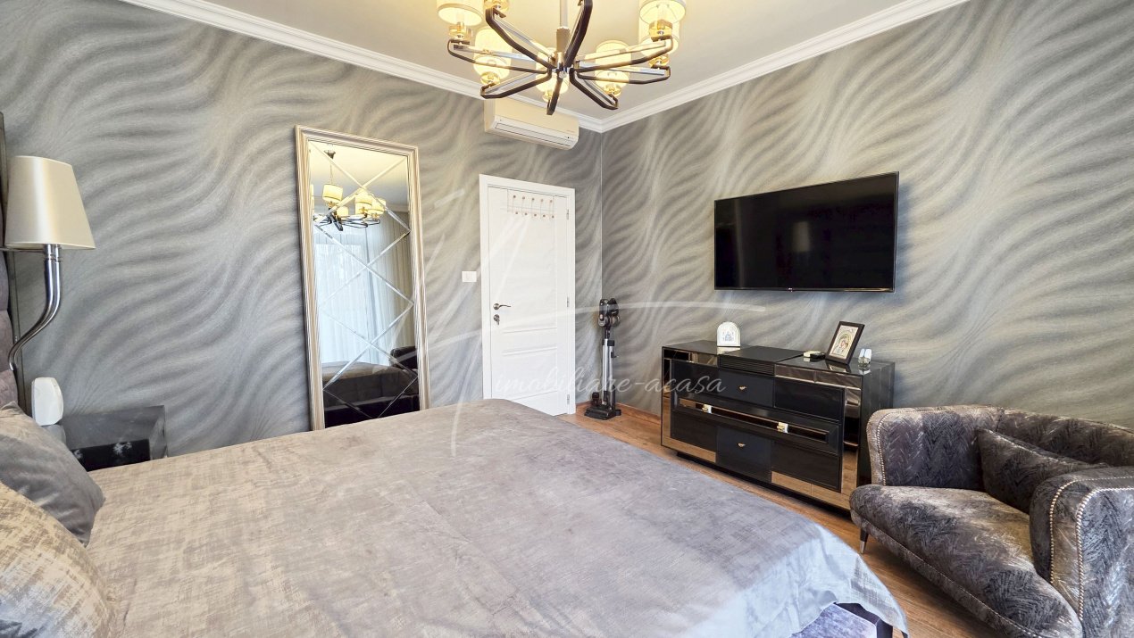 Două dormitoare spatioase si doua bai moderne completeaza aceasta oaza de liniste si eleganta. Holul imens cu dulapuri tip dressing iti asigura spatiu de depozitare si organizare perfecta, in timp ce bucataria mobilata si utilata complet te inspira sa creezi cele mai rafinate preparate culinare.