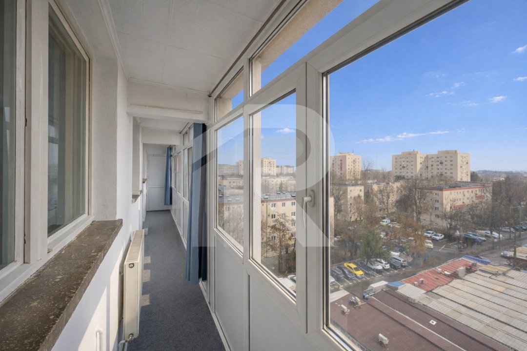 Apartament decomandat, 63 mp utili + balcon 10 mp, etaj 7/10, vedere liberă, bloc bine întreținut, cu lift nou instalat 2026, construcție 1974, fără risc, cu spații comerciale la parter.