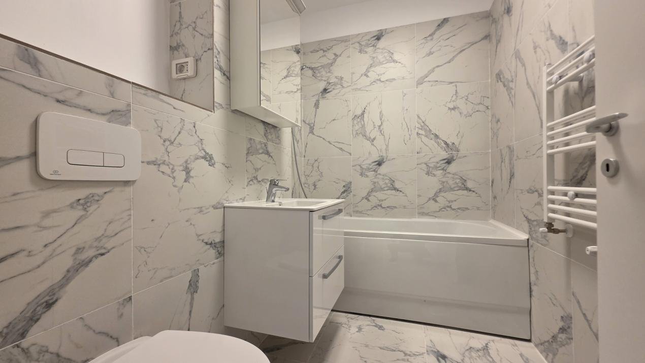 Apartament mobilat si utilat complet, bine compartimentat cu finisaje moderne, interior luminos cu ferestre panoramice de la podea la tavan. Incalzire in pardoseala, costuri reduse datorita panourilor fotovoltaice si de preparare a apaei calde.