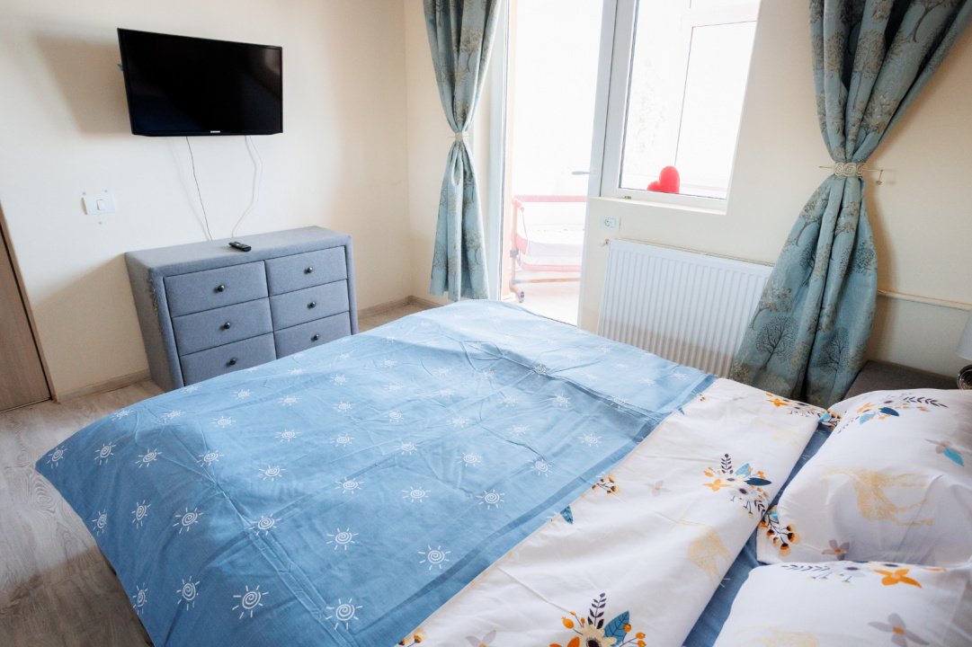 Apartamentul este spațios, luminos și bine compartimentat, având două dormitoare cu paturi duble, living generos, două grupuri sanitare și multiple spații de depozitare. Se vinde complet mobilat și utilat, fiind dotat cu centrală proprie pe gaz, aer condiționat, două televizoare, mașină de spălat rufe, frigider, aragaz, cuptor cu microunde, aparat de cafea și aspirator, fiind gata de mutare imediată.