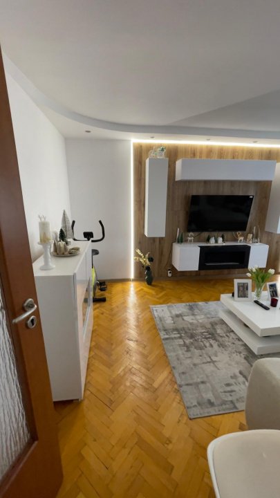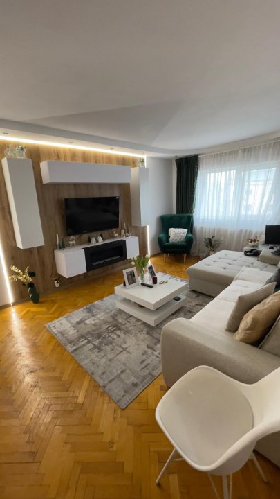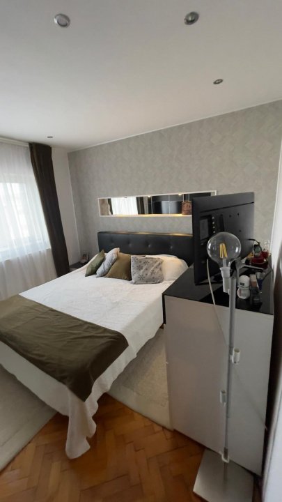 Apartamentul este izolat termic atât la exterior, cât și la interior, are multiple îmbunătățiri și se vinde complet mobilat și utilat. Compartimentarea este eficientă și include sufragerie spațioasă, două dormitoare, bucătărie open-space cu bar și balcon închis. Imobilul este dotat cu mobilier de calitate, dressing pe hol, șemineu pe bază de biocombustibil, canapea extensibilă, mobilier de bucătărie, centrală termică pe gaz, plită pe gaz și baie recent renovată, cu cadă freestanding și WC încorporat.