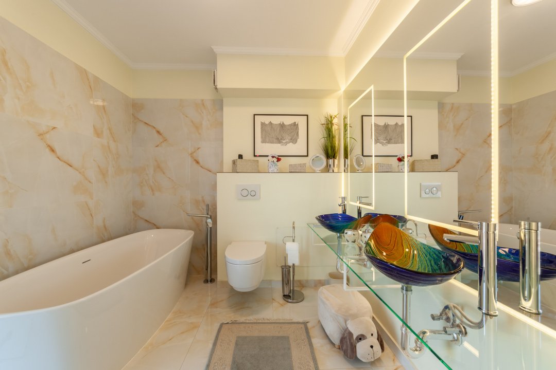Dormitoarele sunt ample și liniștite, oferind intimitate și confort, iar băile sunt finisate cu materiale de calitate superioară, în tonuri elegante și luminoase.