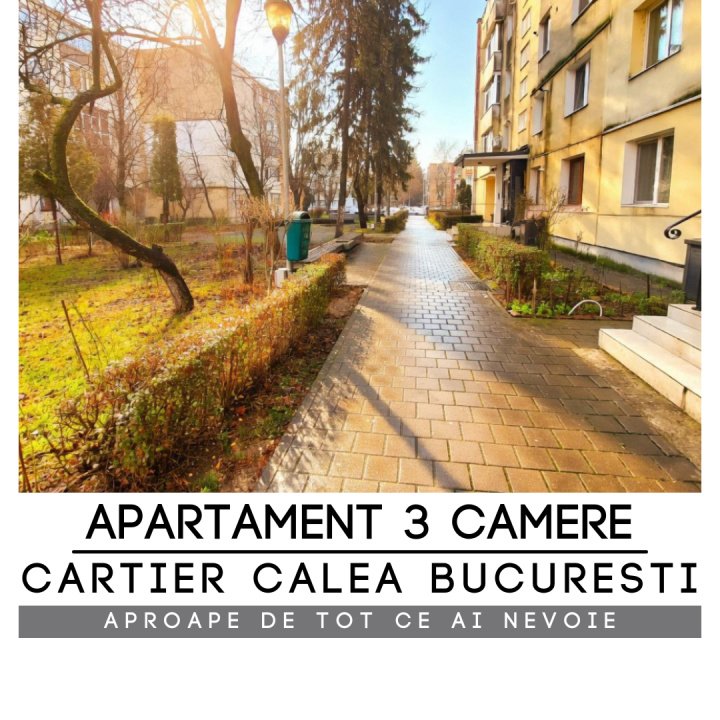 Va prezint spre vanzare un apartament cu 3 camere, semidecomandat, situat la etajul 4 al unui bloc cu 4 niveluri, in zona semicentrala Calea Bucuresti. O locuinta ideala pentru cei care vor sa fie aproape de tot ce este important in oras.