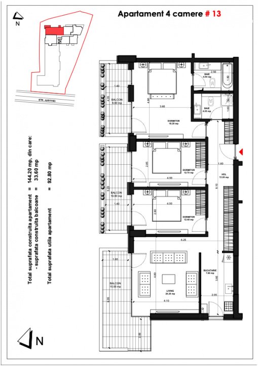 Familia ta merita ce este mai bun. Alege acest apartament cu 4 camere in suprafata utila de 93 mp la care se adauga 2 terase mari, una la living si cealalta cu acces din toate cele 3 dormitoare. Acest apartament este potrivit pentru o familie cu copii, in zona avem Liceul Mihai Eminescu si alte scoli si gradinite.