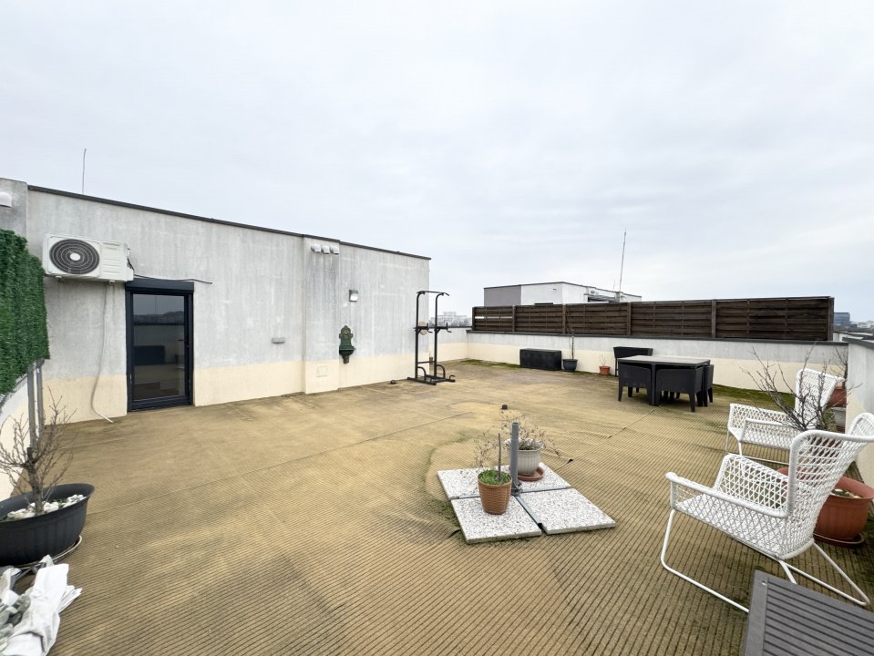 Nu este doar o terasă mare. Este un spațiu care redefinește locuirea urbană. Cu o suprafață de 82,32 mp, terasa devine o extensie naturală a casei, un loc în care diminețile încep mai lent, iar serile capătă alt ritm. Panorama deschisă asupra Bucureștiului aduce acea senzație rară de libertate, greu de replicat într-un oraș aglomerat.