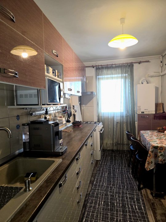 Apartament cu 4 camere, decomandat cu suprafață totală de 81,78 mp, din care 6,19 mp balcon, situat la etajul 4/4 al unui bloc izolat termic. Locuința se vinde complet mobilată și utilată și este dotată cu centrală proprie pe gaz.