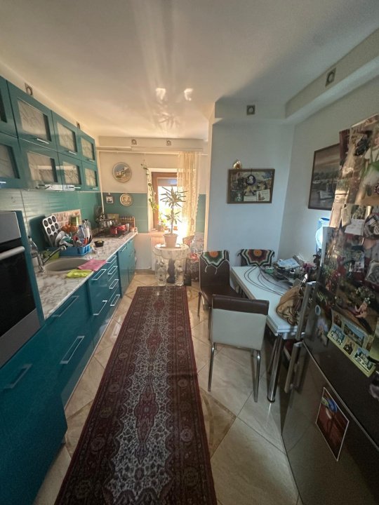 Apartamentul este compartimentat eficient și cuprinde o zonă de zi (living) spațioasă și primitoare, amenajată modern, dotată cu ușă glisantă din sticlă securizată și colțar din piele, extensibil, prevăzut cu ladă pentru depozitare. Bucătăria este mobilată și utilată complet cu mobilier nou, fiind separată de hol printr-o ușă glisantă din sticlă securizată, oferind un plus de eleganță și lumină.
