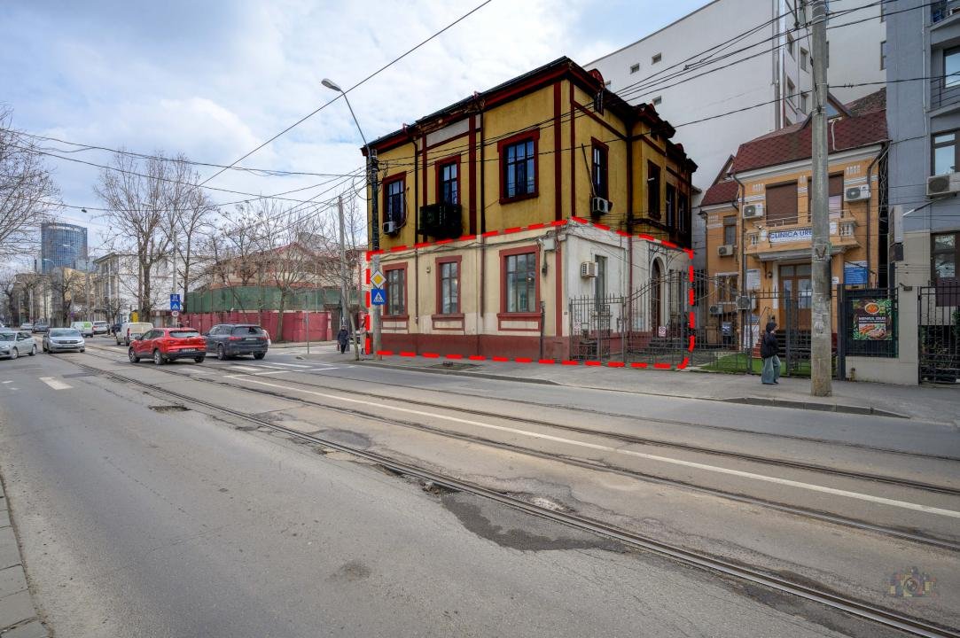 Proprietatea este amplasată într-un imobil cu arhitectură interbelică (aprox. anii 1930), remarcat prin volumetrie elegantă și elemente originale de fațadă, specifice construcțiilor de prestigiu din acea perioadă. Clădirea oferă un cadru reprezentativ, ideal pentru activități de business precum clinică, birouri premium sau sediu de companie.