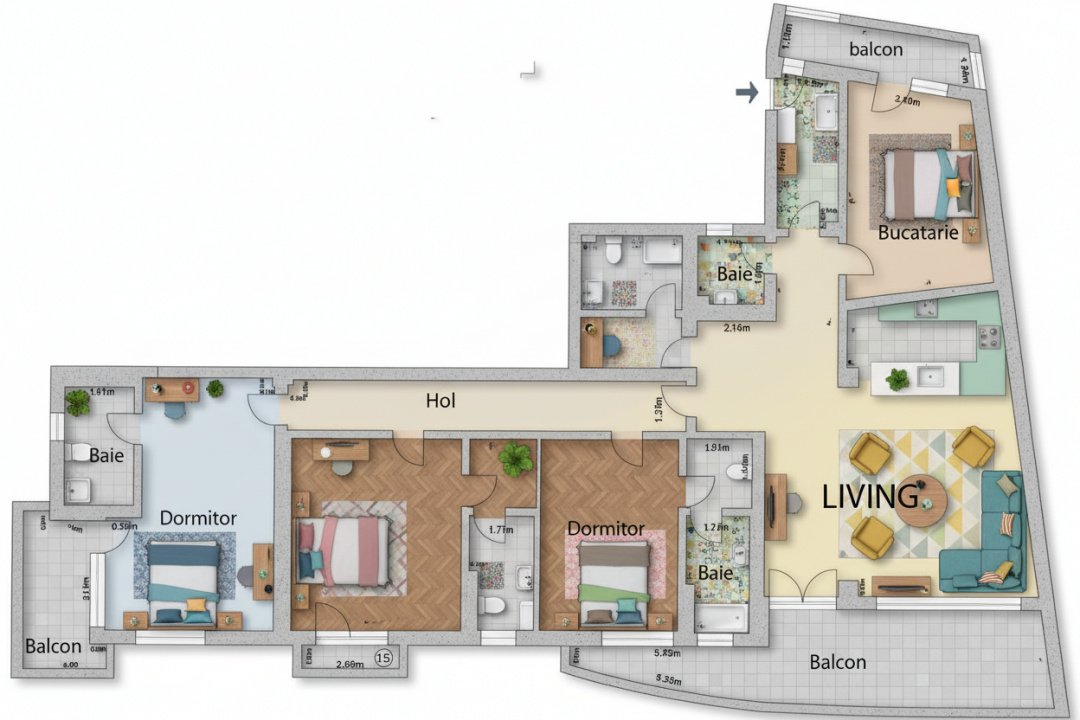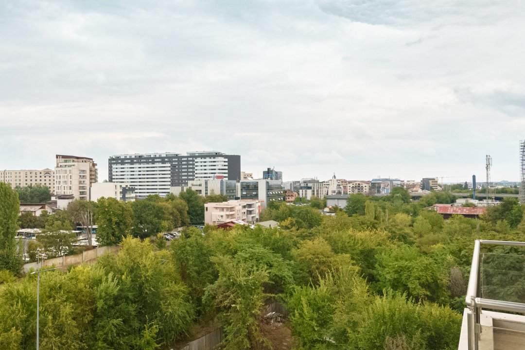 Lumina naturală pătrunde din abundență prin ferestrele mari, evidențiind parchetul elegant și pereții albi, care creează un ambient fresh și primitor. Tavanul cu decorațiuni moderne și iluminatul încastrat adaugă o notă sofisticată, iar balustradele din sticlă securizată sporesc senzația de spațiu deschis și contemporan. Apartamentul este nemobilat, oferind libertatea de a-l personaliza după gustul dvs. Amplasat într-un imobil cu 7 etaje, înconjurat de parcuri, restaurante selecte și acces facil spre centrele business și culturale ale capitalei, este o alegere excelentă pentru cei care prețuiesc liniștea și siguranța.Imaginează-ți diminețile însorite și serile relaxante cu priveliște spre oraș — această proprietate este o raritate pe piață, potrivită pentru investiție sau pentru o locuință premium în București.