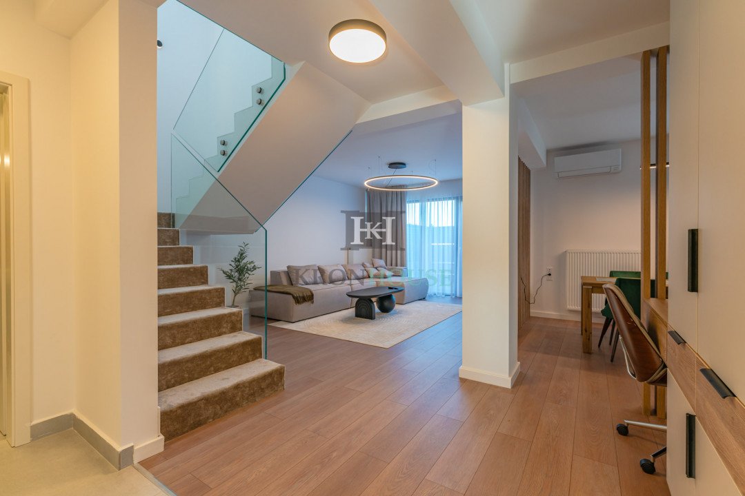 Fiecare colt al acestei case a fost gandit pentru a crea un echilibru perfect intre stil si confort. Camerele luminoase si aerisite te vor face sa te simti acasa inca de la prima vizita, iar interiorul modern este un adevarat refugiu de relaxare. Livingul generos, cu elemente premium si detalii sofisticate, te invita sa petreci momente de neuitat alaturi de cei dragi.
