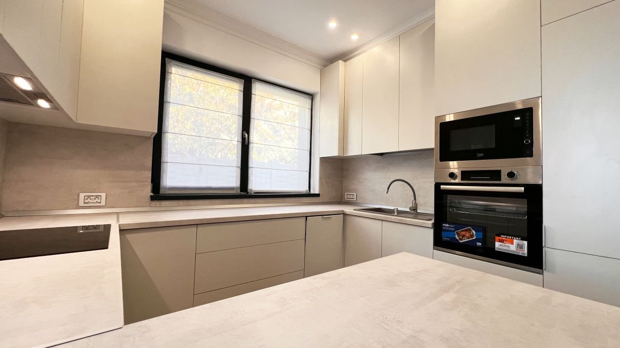 Vila dispune de un living spațios și luminos, o bucătărie complet mobilată și utilată, trei dormitoare, trei băi și o cameră tehnică. Încălzirea prin pardoseală (centrală Ariston) și sistemele de aer condiționat asigură confort termic pe tot parcursul anului. Curtea este frumos amenajată, iar terasa oferă un spațiu intim perfect pentru relaxare. Locurile de parcare sunt dispuse in interiorul ansamblului.