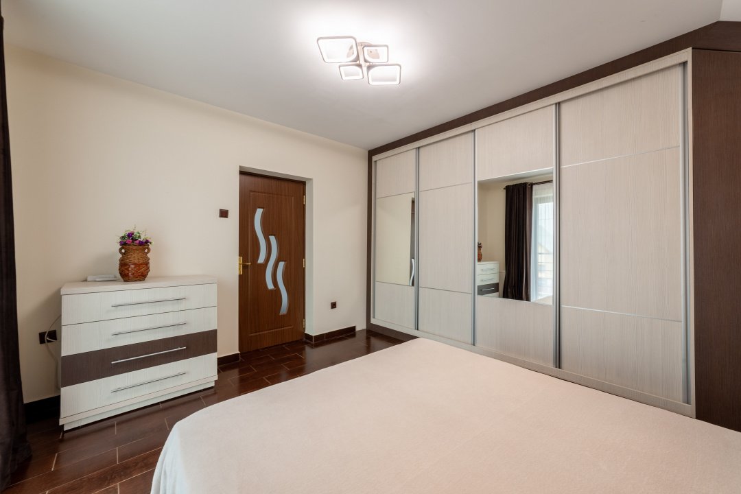 Etaj: 3 dormitoare luminoase, baie mare cu cadă și bideu, balcon inchis tip logie si terasa