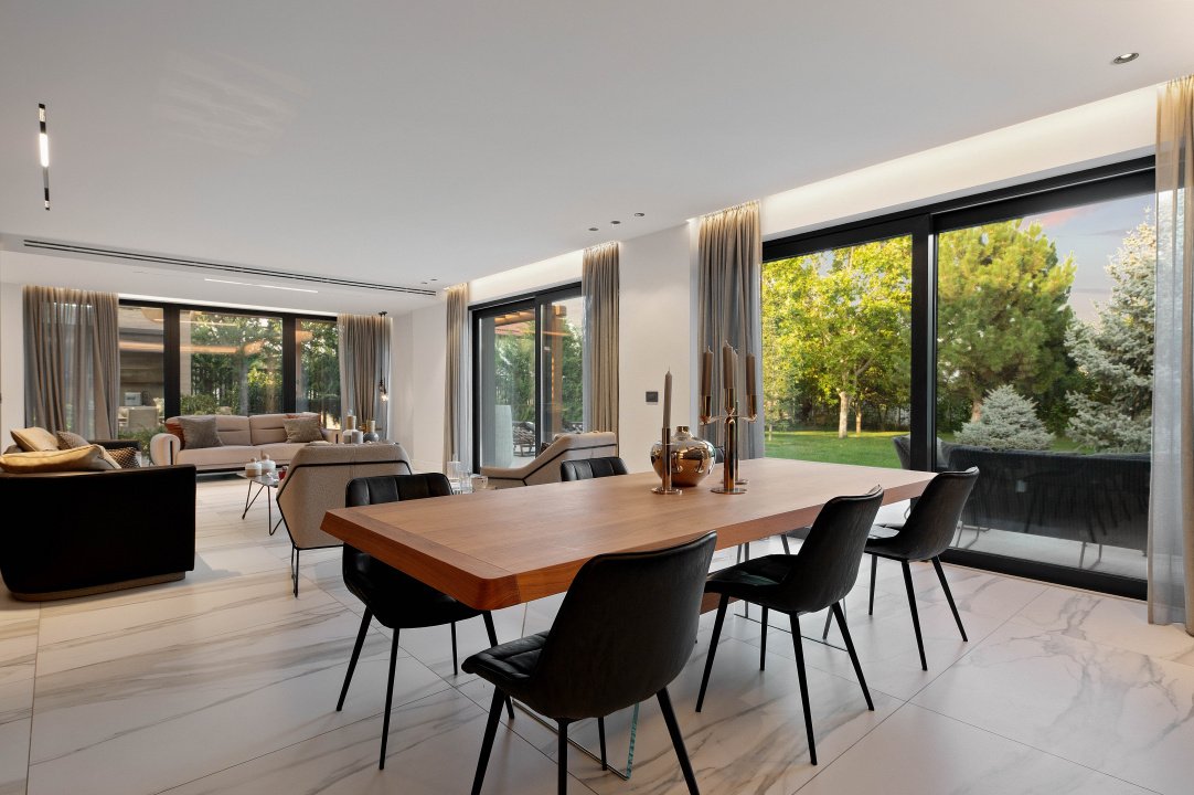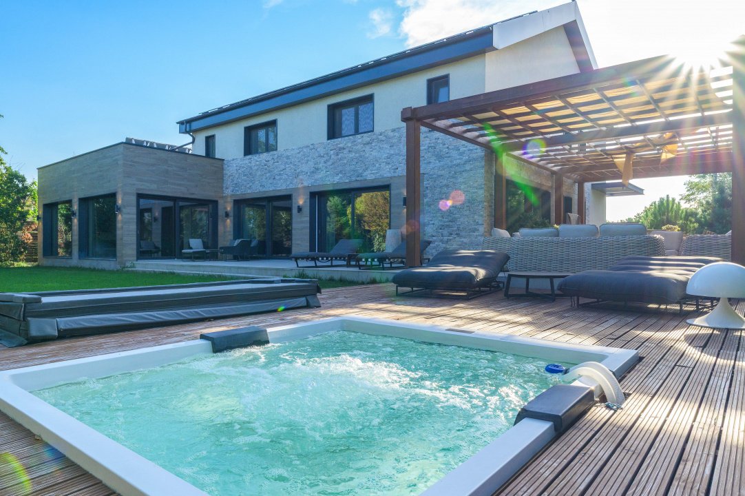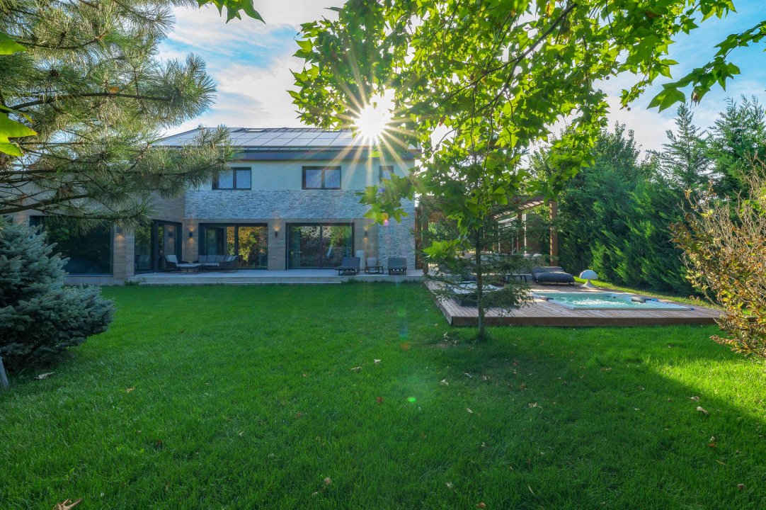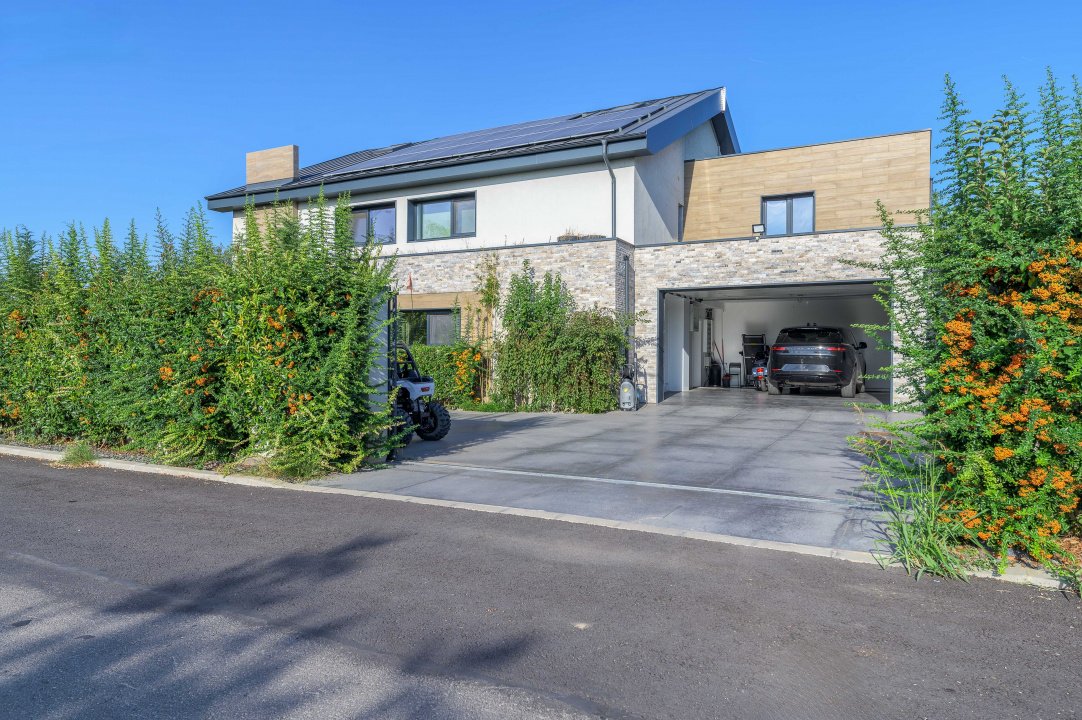 TUNARI, VILA MODERNA - 400 MP TOTAL, 1500 MP LOT! Acces rapid din A3, zona aerisita.Vila prestigioasa si perfect compartimentata, ideala pentru familiile ce isi doresc statut, intimitate si securitate. Lot amenajat peisagistic, vegetație matura, jacuzzi, bucatarie exterioara, loc de joaca pentru copii, gazon si sistem de irigatii, patio dining, garaj, locuri de parcare. Interior superb amenajat, la cheie, 3 master bedroom cu baie si dressing, 2 livinguri, dining, bucatarie cu insula centrala, birou, spatii depozitare, laundryroom, mansarda amenajată pentru personal.