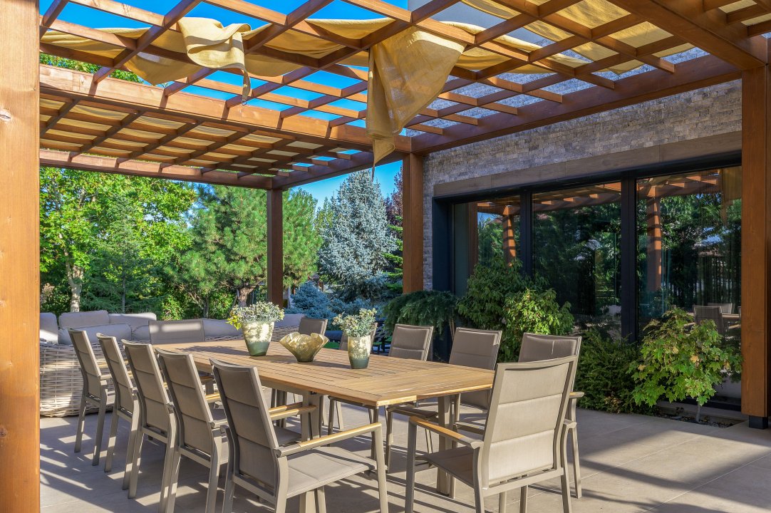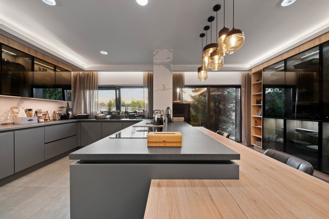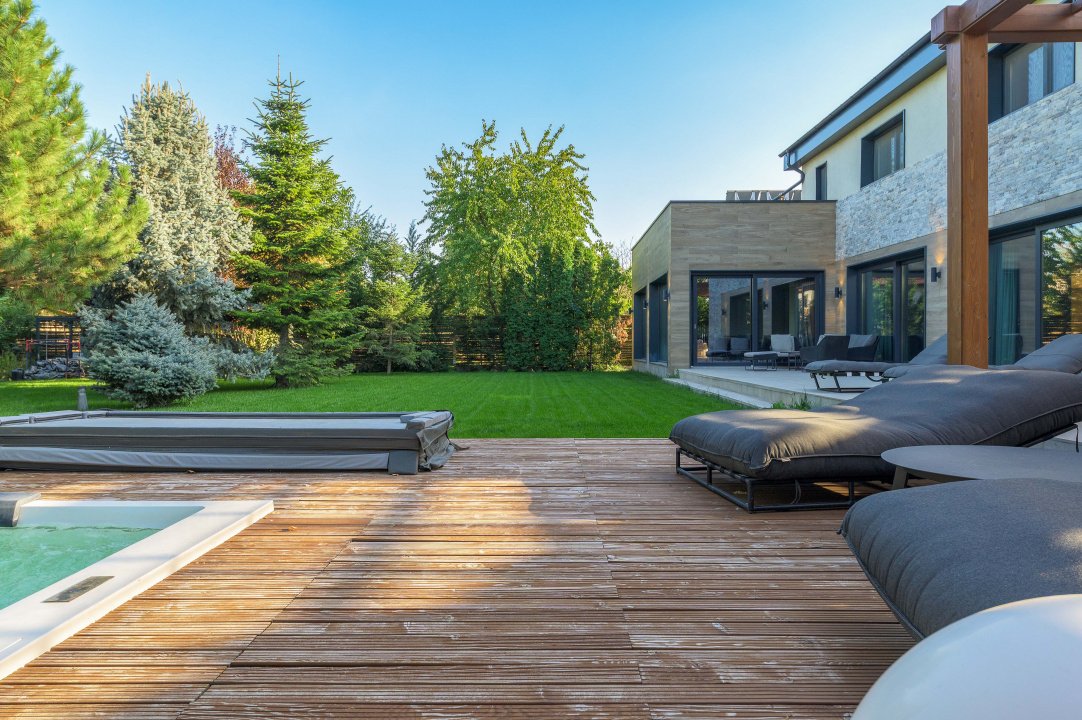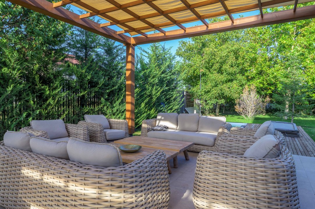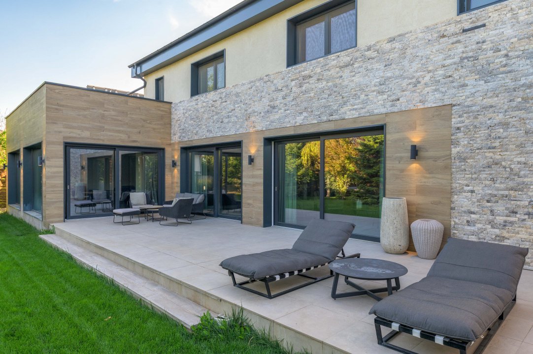 TUNARI, VILA MODERNA - 400 MP TOTAL, 1500 MP LOT! Acces rapid din A3, zona aerisita.Vila prestigioasa si perfect compartimentata, ideala pentru familiile ce isi doresc statut, intimitate si securitate. Lot amenajat peisagistic, vegetație matura, jacuzzi, bucatarie exterioara, loc de joaca pentru copii, gazon si sistem de irigatii, patio dining, garaj, locuri de parcare. Interior superb amenajat, la cheie, 3 master bedroom cu baie si dressing, 2 livinguri, dining, bucatarie cu insula centrala, birou, spatii depozitare, laundryroom, mansarda amenajată pentru personal.