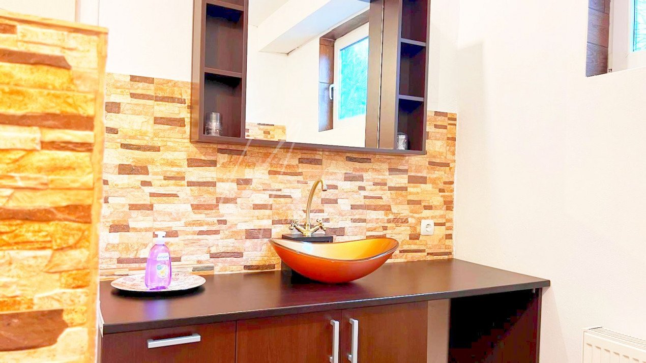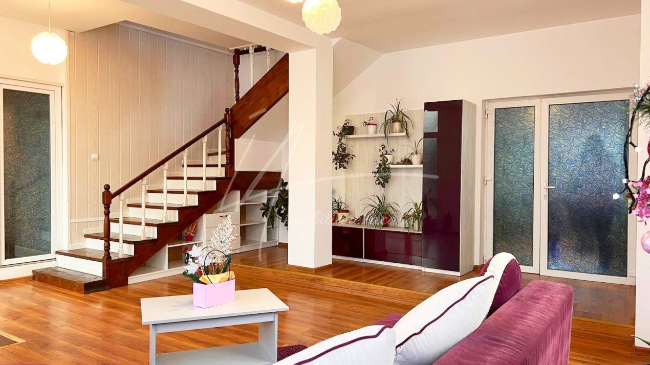 Parterul găzduiește un living spațios și primitor, cu acces direct către bucătărie complet mobilată și utilată, un apartament cu baie proprie, precum și spații tehnice – inclusiv spălătorie și călcătorie – utile în exploatarea turistică.
