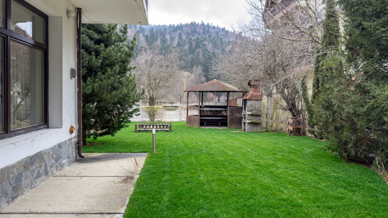 Proprietatea se remarcă prin amplasamentul strategic, capacitatea generoasă de cazare (12 dormitoare) in suprafata utila de 632 mp , teren de 1255mp și finisajele premium, fiind construită în 2015 conform celor mai înalte standarde de calitate.