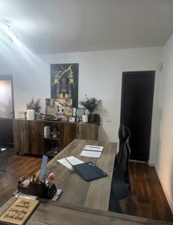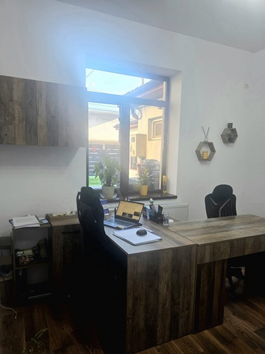 Proprietatea a fost renovată recent și este dotată cu centrală proprie pe gaz și aer condiționat, asigurând confort pe tot parcursul anului. Se vinde mobilată pentru birouri, fiind pregătită pentru utilizare imediată.