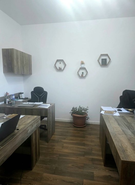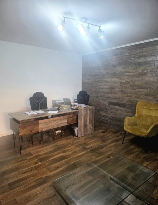 Imobilul este compartimentat în 3 camere, bucătărie și 2 băi și dispune de două intrări separate, oferind flexibilitate în organizarea spațiilor de lucru sau în desfășurarea mai multor activități simultan.