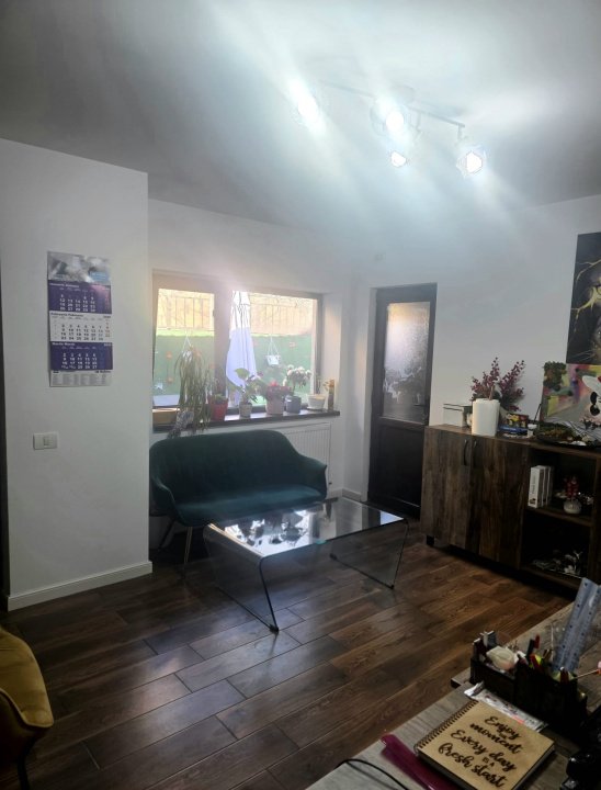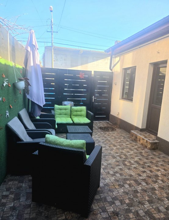În completarea spațiului interior, casa beneficiază de o curte de 23 mp, amenajată ca loc de relaxare, un avantaj pentru pauze sau întâlniri informale într-un cadru exterior plăcut.