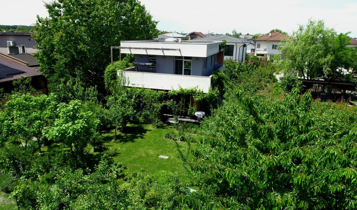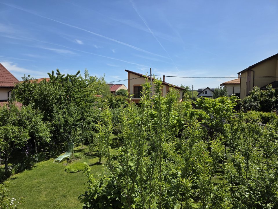 Această vilă tip P+1 este amplasată pe un teren generos de 830 mp, oferind o grădină splendidă cu peste 80 de pomi fructiferi și arbuști, loc ideal pentru relaxare, joacă sau grădinărit.