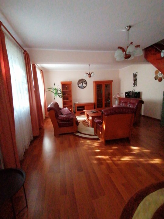 - Parter: hol intrare și living generos de aproximativ 60 mp, cu zonă de relaxare și dining