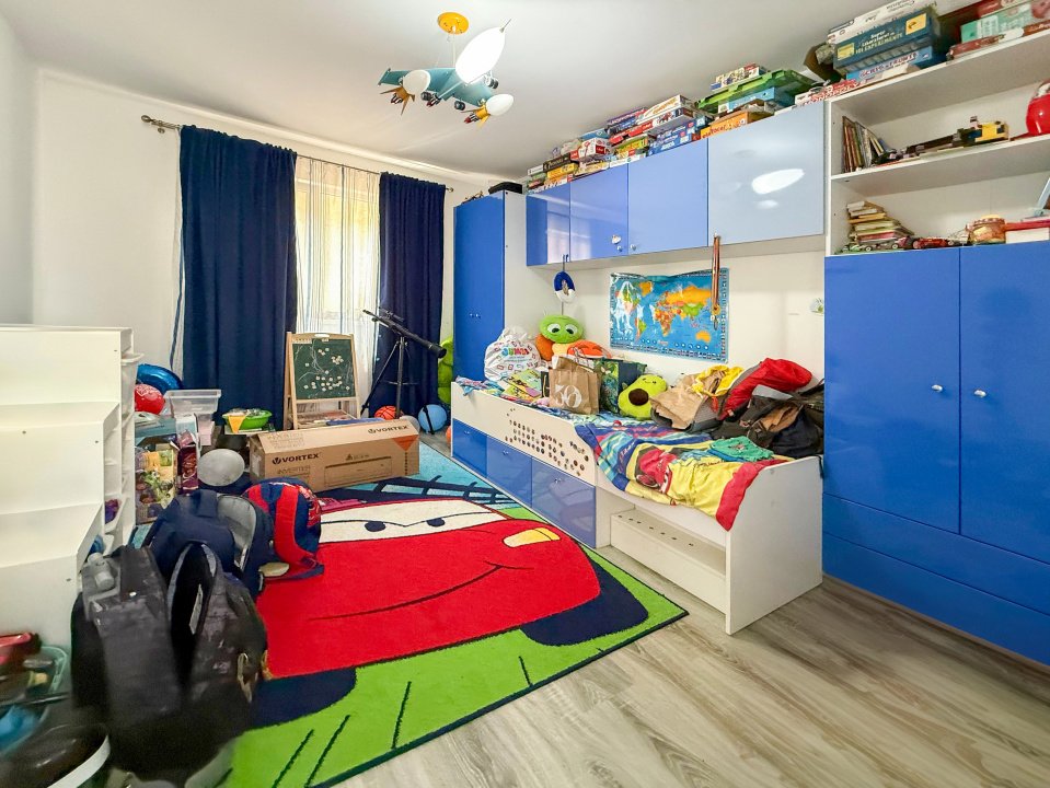 Două dormitoare – unul amenajat ca dormitor matrimonial, iar celălalt este în prezent camera copiilor, plină de jucării, ideală pentru cei mici