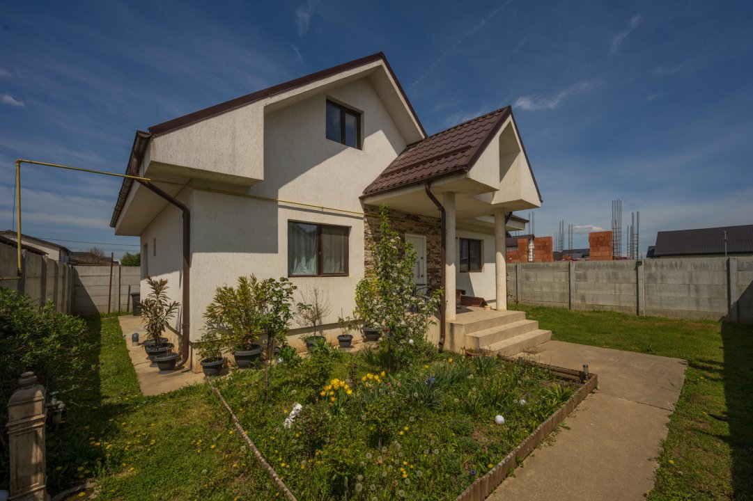 Casa este finisata, dotata cu centrala termica proprie pe gaz ( Ariston in condensatie 23kw) si incalzire prin calorifere din otel, ferestre cu geam termopan si tamplarie pvc, plase de insecte la toate ferestrele, sistem de alarma, usi interioare moderne. Pardoselile sunt placate cu parchet laminat in camere si gresie in hol, baie si bucatarie. Instalatia electrica este pe conductori din cupru (2,5mmp grosime). Proprietatea este in stare foarte buna, a fost locuita 5 ani de proprietari si este extrem de bine intretinuta si nu necesita niciun fel de reparatii sau retusuri, cu exceptia amenajarii podului.