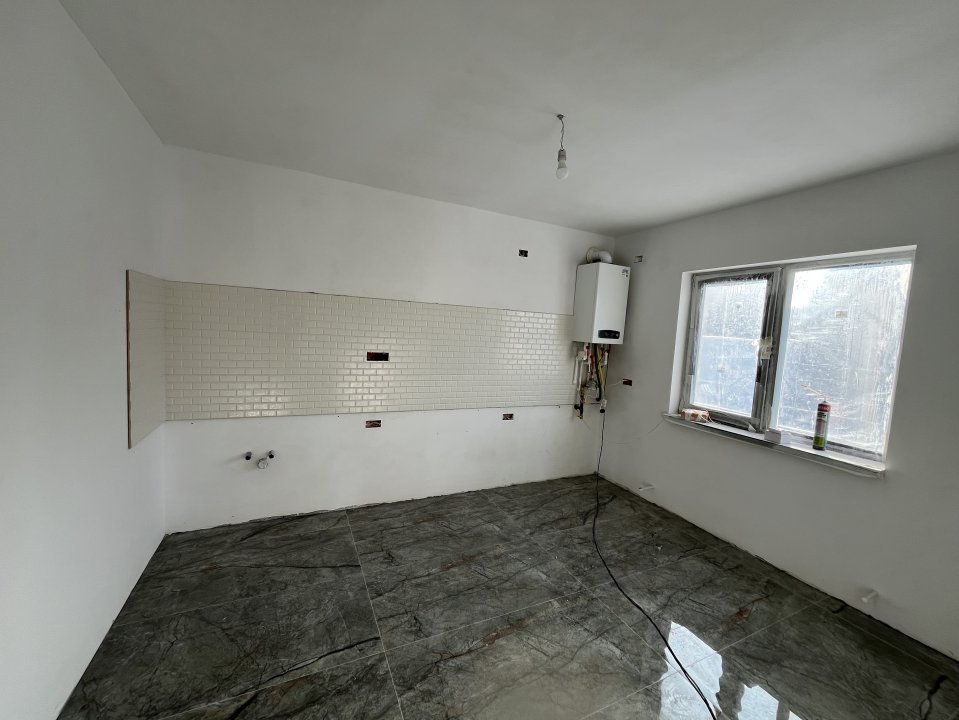 Casa se preda la gata astfel ca in imaginile de prezentare, mai sunt mici retusuri de facut. Gresie pe terasa si trepte la intarare, gresie in living, bucatarie si baie, parchet in cele doua dormitoare, usile interioare, obiecte sanitare, centrala pe gaze si calorifere (toate alese de catre cumparator intr-un anumit buget stabilit de ambele parti)