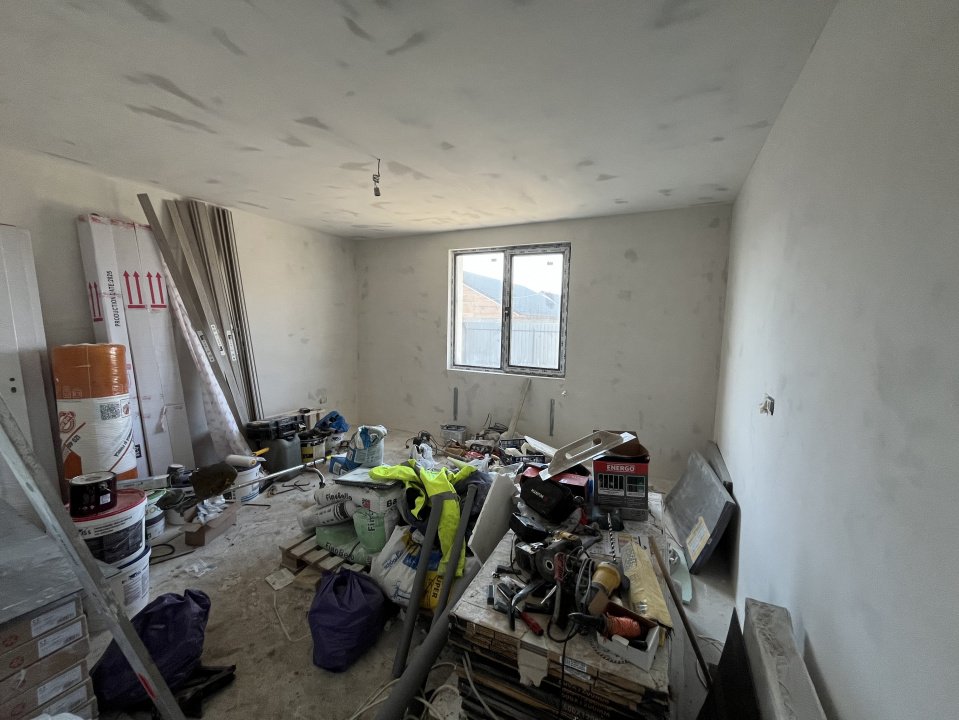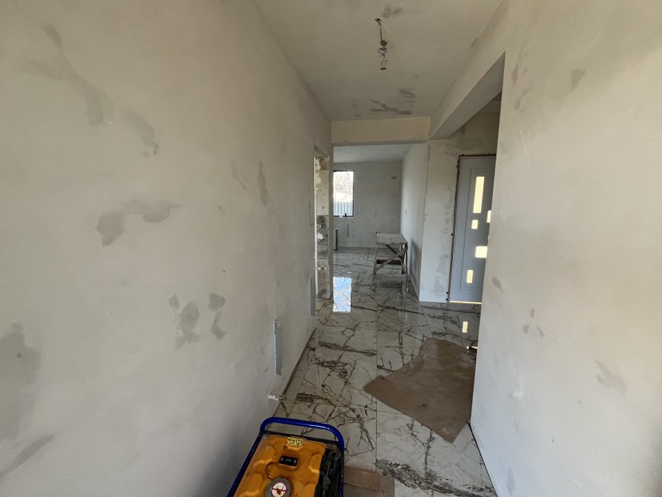 Casa se preda la gata astfel: Gresie pe terasa si trepte la intarare, gresie in living, bucatarie si baie, parchet in cele doua dormitoare, usile interioare, obiecte sanitare, centrala pe gaze si calorifere (toate alese de catre cumparator intr-un anumit buget stabilit de ambele parti)
