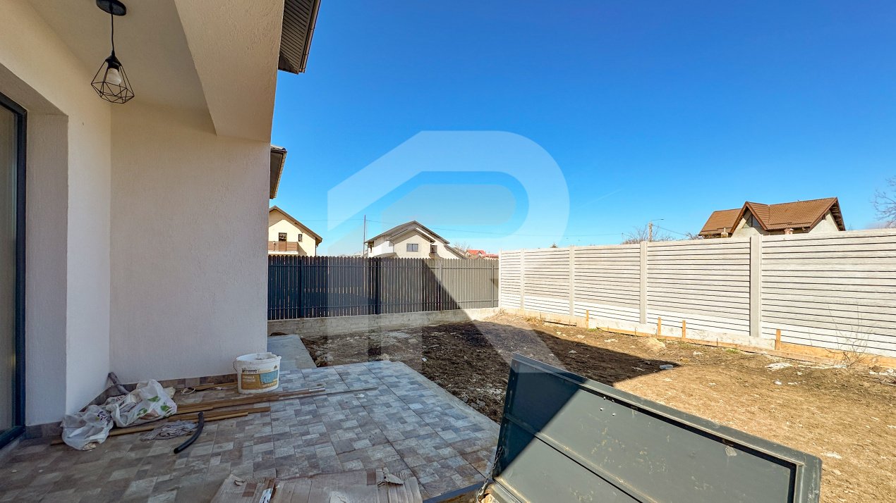 Suprafața terenului este de 310mp, iar amprenta casei este de 80mp, rămânând o suprfață de teren liber de aprox. 230mp. Există poartă de acces auto iar mașina poate fi parcată în curtea proprie.