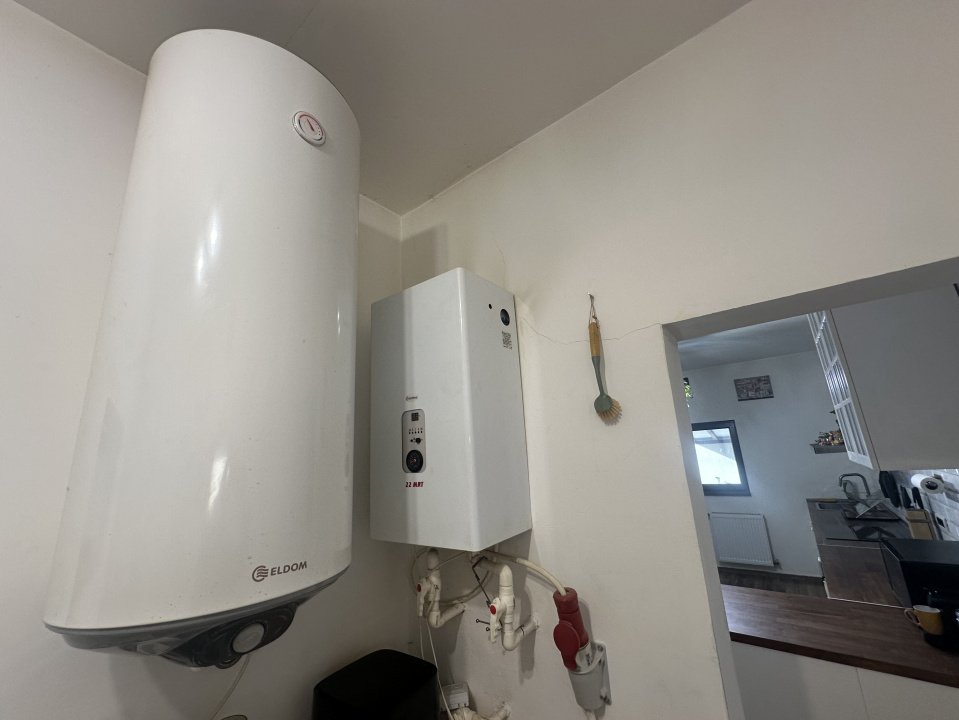 Casa este total mobilata si utilata, are 4 camere: Living spatios, trei dormitoare luminoase, 2 dressinguri, bucataria mare cu camara, are iesire catre terasa din spatele casei, camera tehnica cu centrala termica, baie mare cu cada si fereastra.
