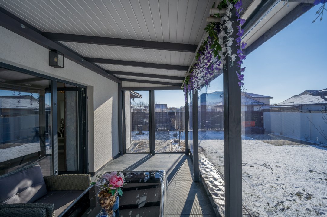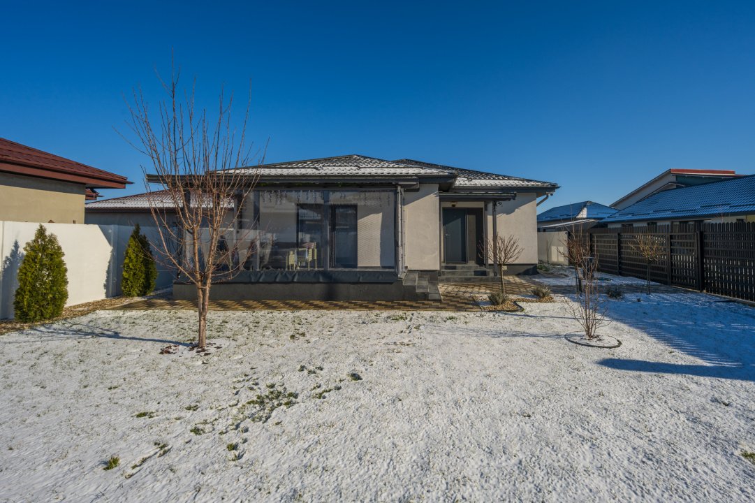Interiorul este luminos și primitor, cu o compartimentare practică: living generos, trei dormitoare, două băi și spații de depozitare bine gândite. Terasa, închisă ulterior, a devenit o extensie firească a zonei de zi, făcând legătura naturală dintre interior și curte și adăugând un plus de confort.