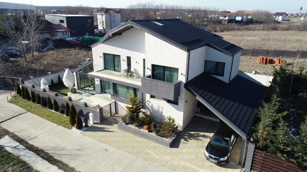 Va oferim o vila deosebita placata cu marmura de 4 camere avand o suprafata utila de 260mp, situata in Corbeanca.