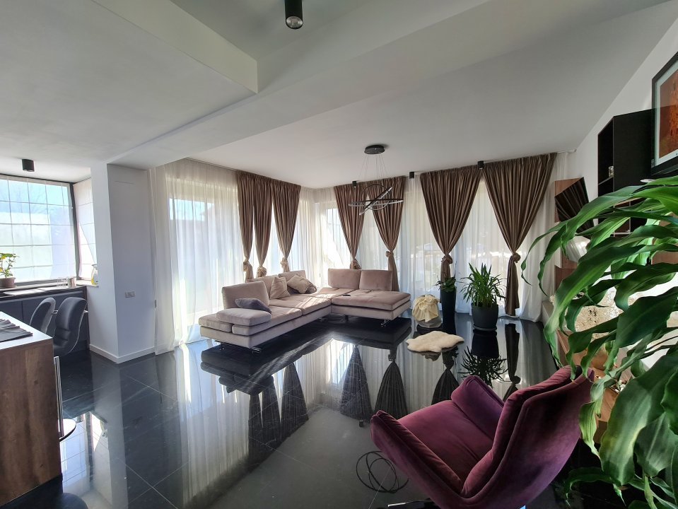 Mobilierul este comandat din Italia fiind in gama de lux, cele 3 tipuri de Marmura folosite in exterior, interior si baile utilate cu mobilier de la Freestanding, plus lemnul masiv folosit in dormitoare aduc un rafinament in viata noului propritar. Celelalte benificii sunt : Incalzire in pardoseala pe zone, Supraveghere video, Sistem de alarma, Statii filtrare apa, Curent trifazic, Irigatii pomi si gazon, Robot special pentru tunsul gazonului, etc.