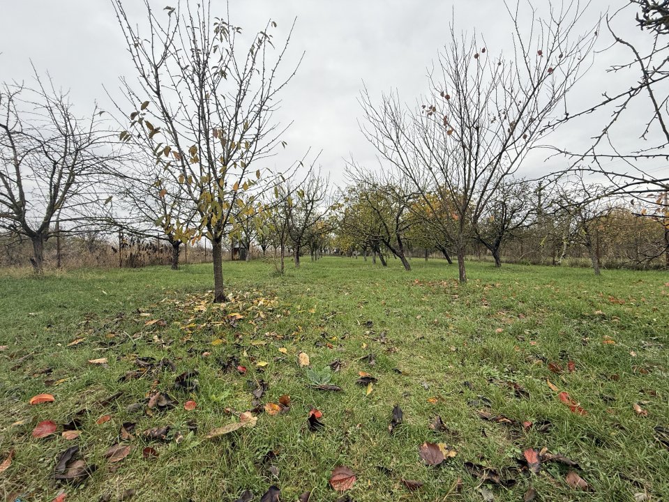 Proprietatea, de vanzare, este compusa dintr-un teren total de 1870mp: livada de 1500mp si curte amenajata cu gradina, foisor, gratar, balansoar si alte dependinte. Livada este formata din pomi fructiferi maturi, pe rod.