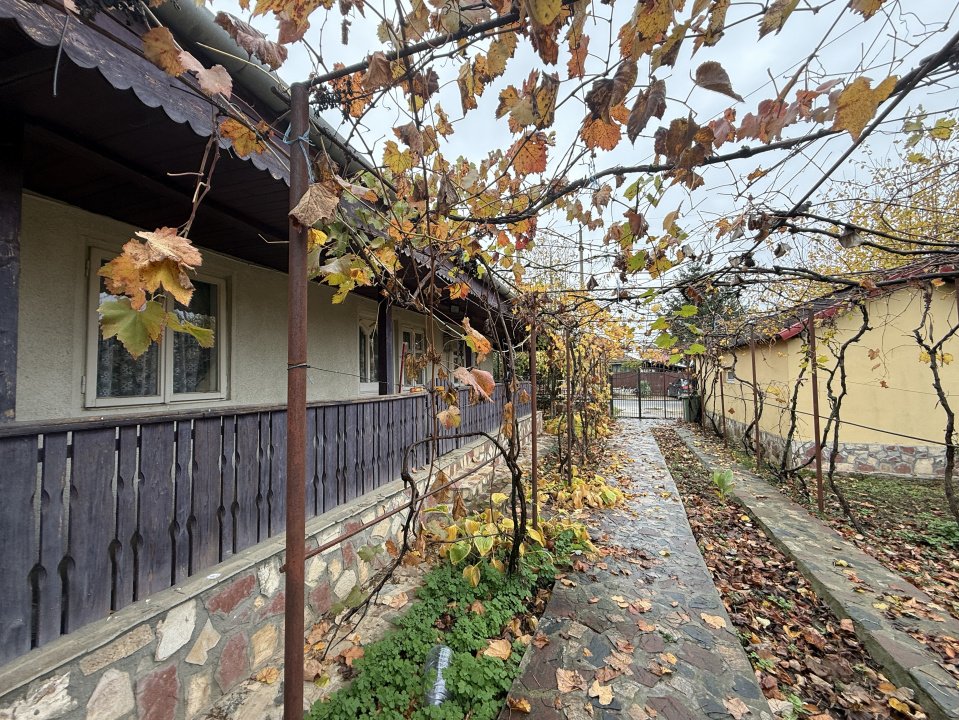 Garaj cu acces direct din strada. Curtea casei este amenajata: un foisor cu gratar, o zona de relaxare cu balansoar, pomi fructiferi, vita de vie, flori, capsuni, smochin, liliac si multe alte plante si flori.