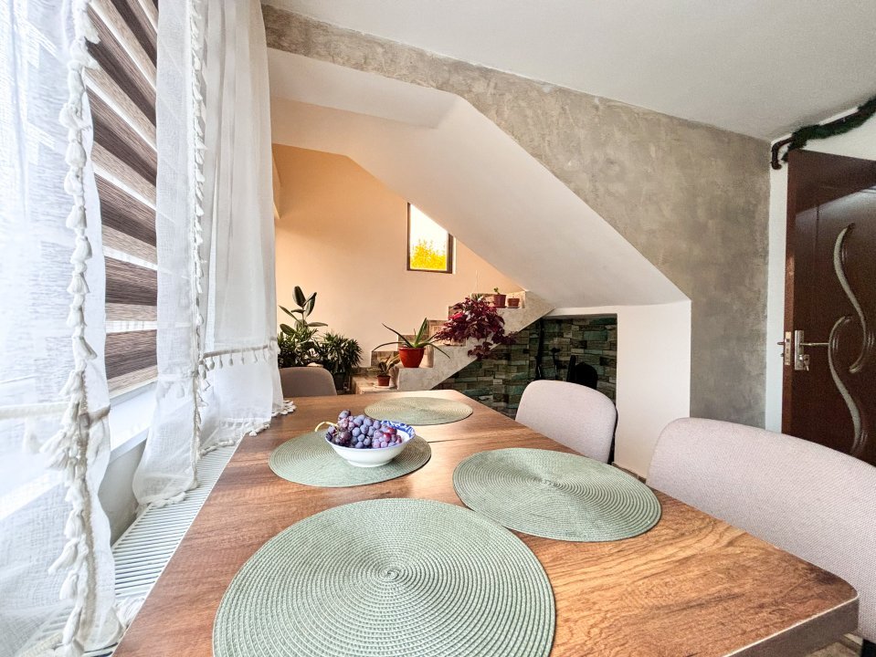 Mansarda este înaltă și Neamenajată, oferind posibilitatea de a crea un dormitor suplimentar, o baie și spații de depozitare sau chiar o zonă de relaxare.