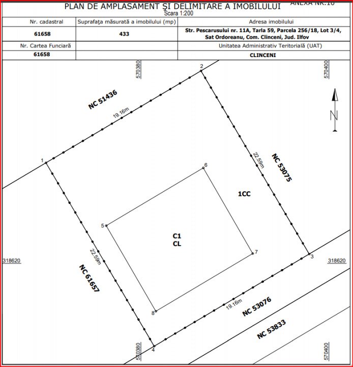 Proprietatea se afla in com.Clinceni, sat.Ordareanu, str. Pescarusului nr.11A.