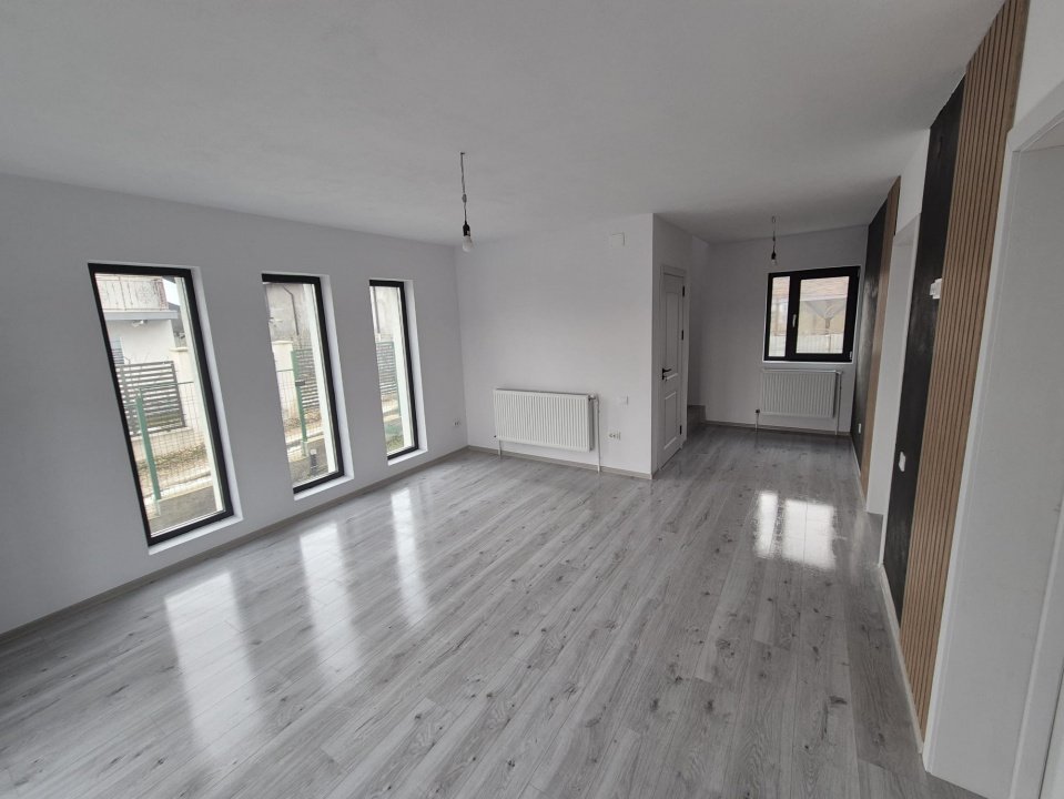 Locuința se predă complet finisată, cu gresie, faianță și parchet montate, centrală termică, calorifere, prize și întrerupătoare instalate.