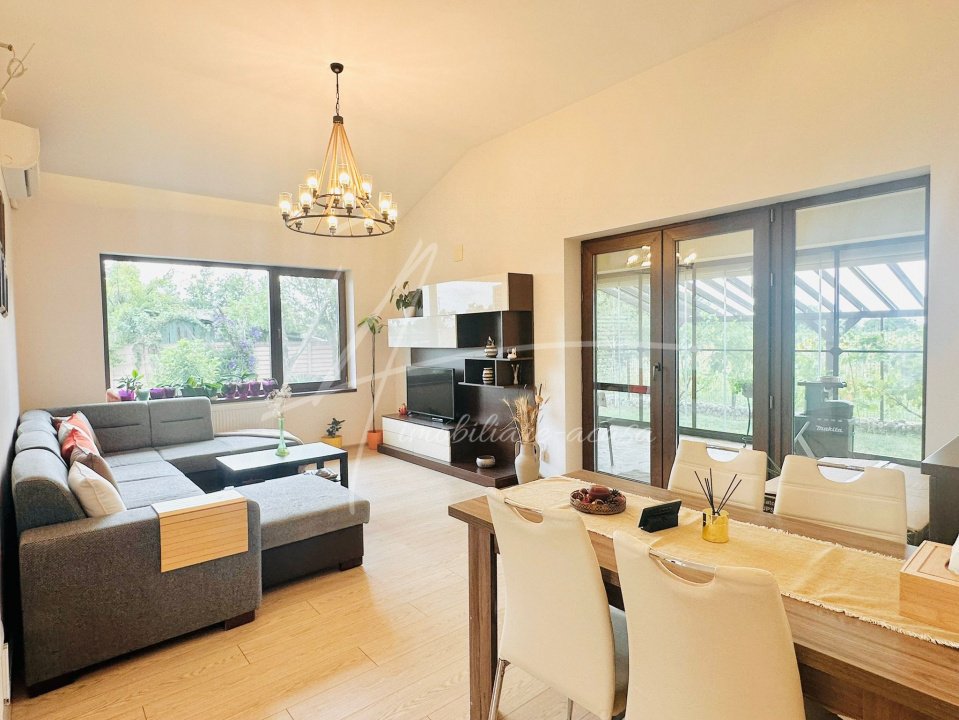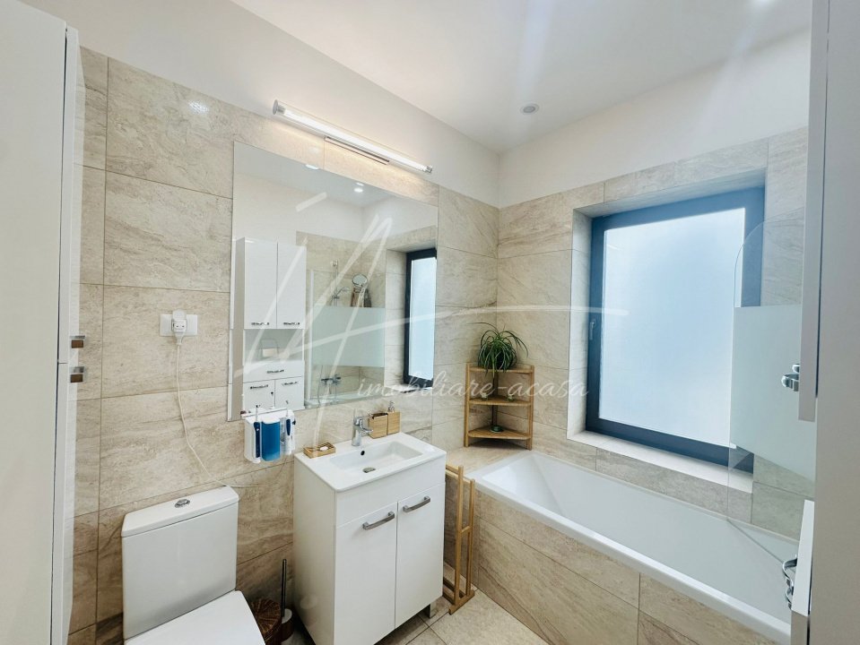 Construită cu o atenție deosebită la detalii, casa beneficiază de pereți dublii între unități pentru intimitate sporită, structură solidă din cadre de beton și cărămidă Porotherm de 25 cm, termoizolație eficientă de 10 cm cu polistiren și tâmplărie PVC tripan cu feronerie Roto – totul pentru un confort termic optim și costuri reduse.
