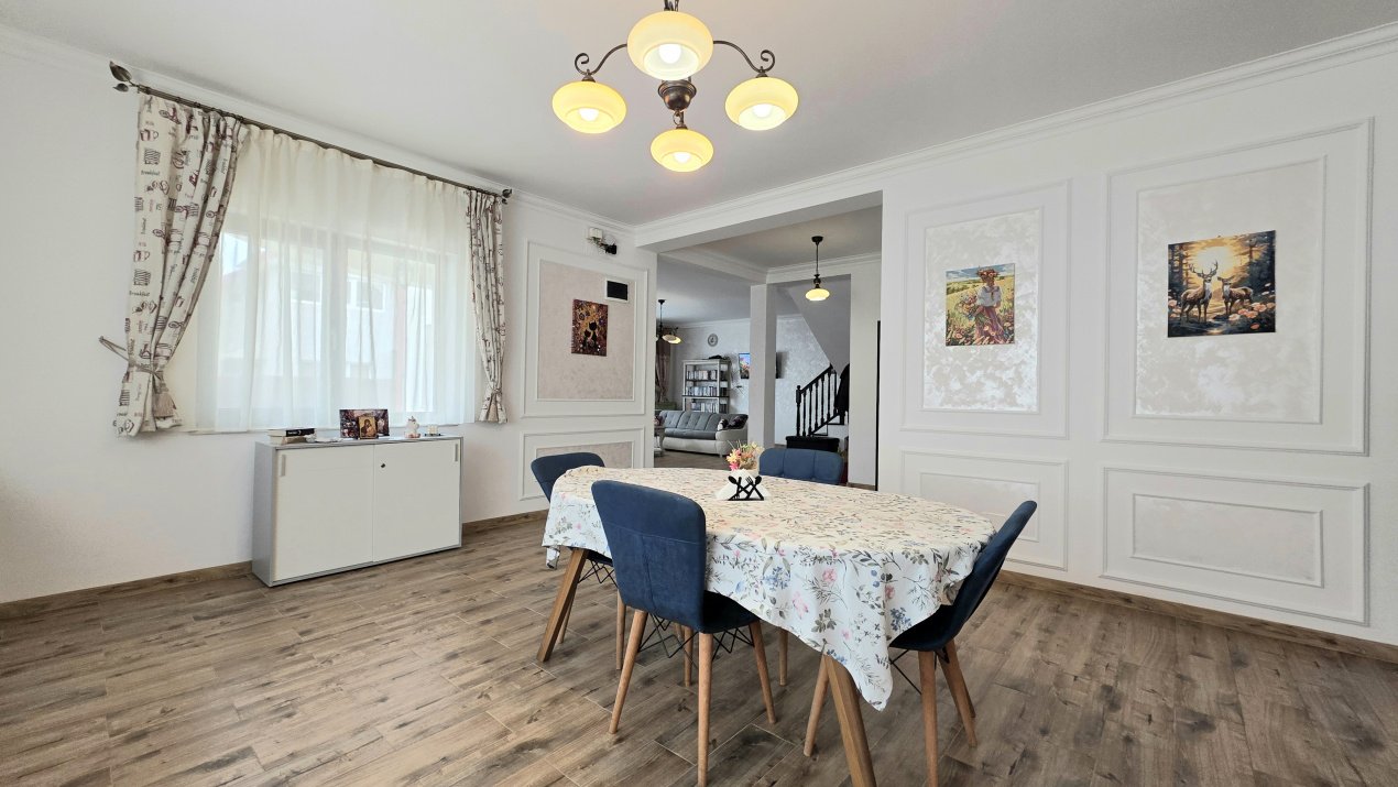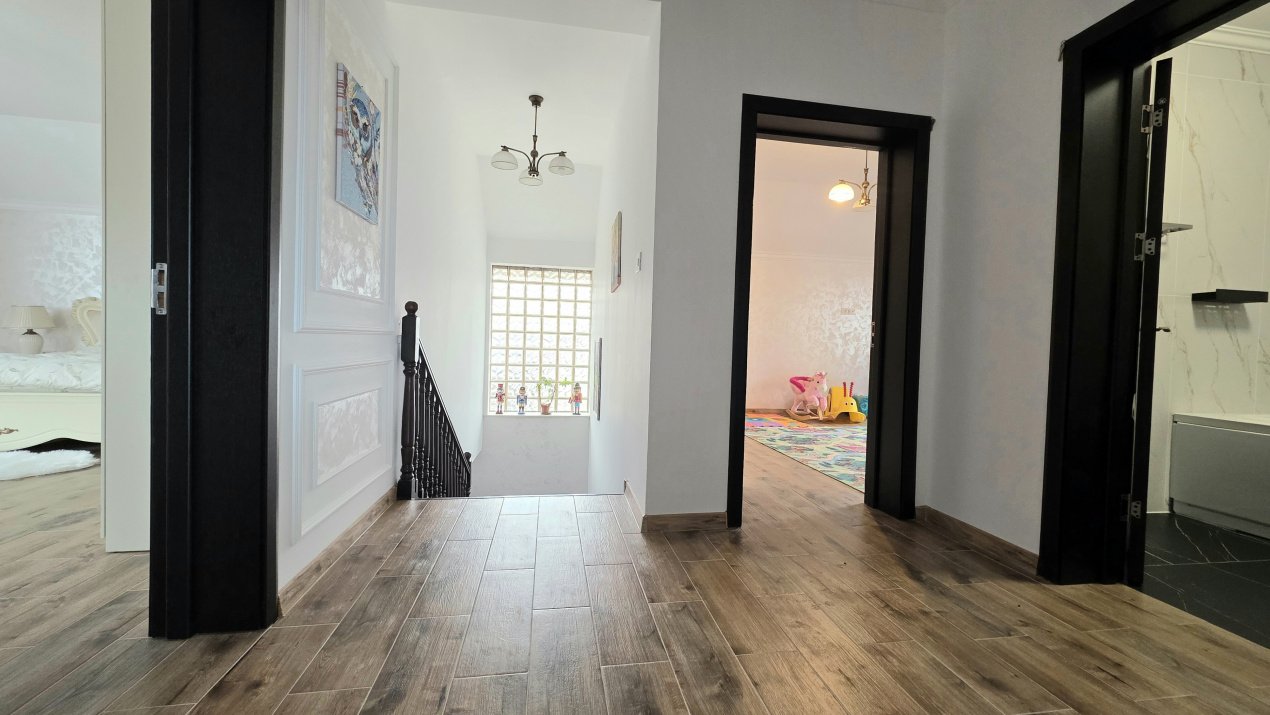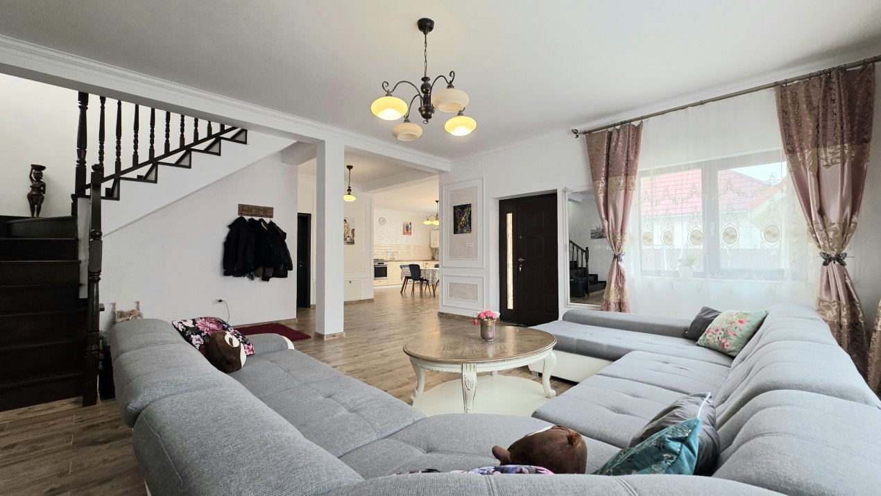 Vila are finisaje moderne și se vinde împreună cu mobilierul si electrocasnicele de bucătărie inclus în preț. Este o locuință gata de mutat, ideală pentru o familie care caută spațiu și siguranță.