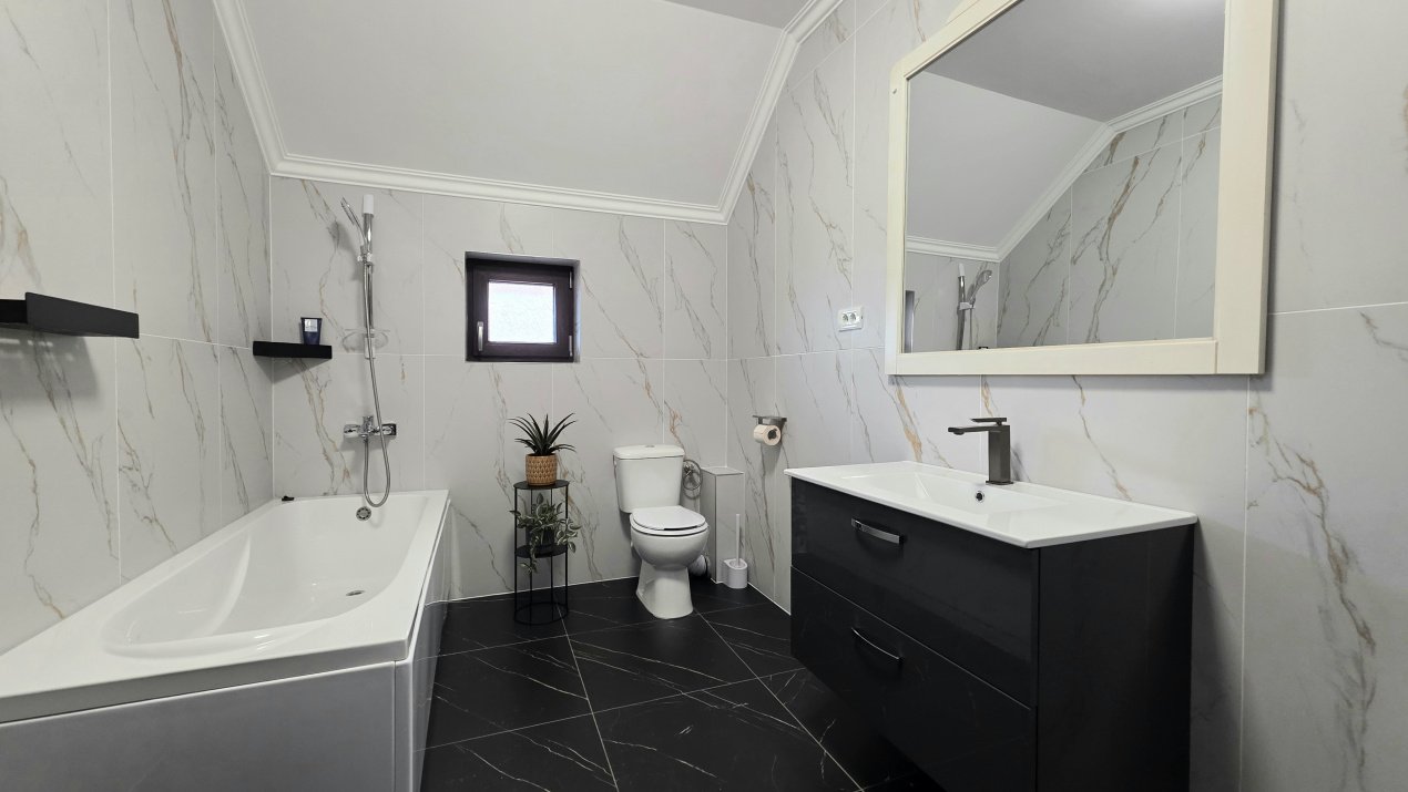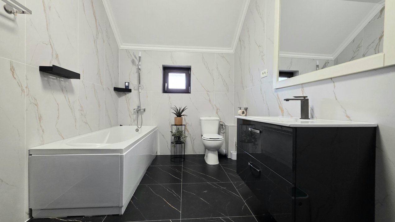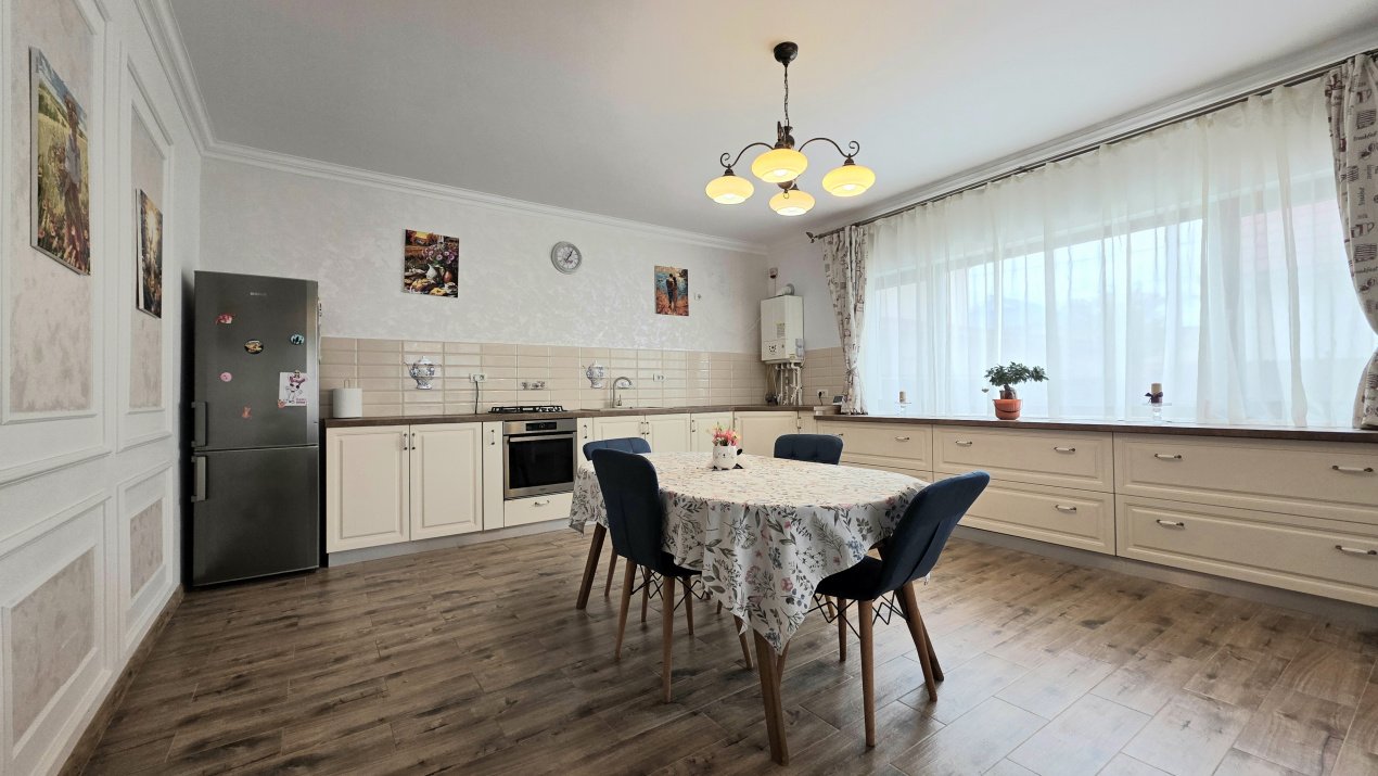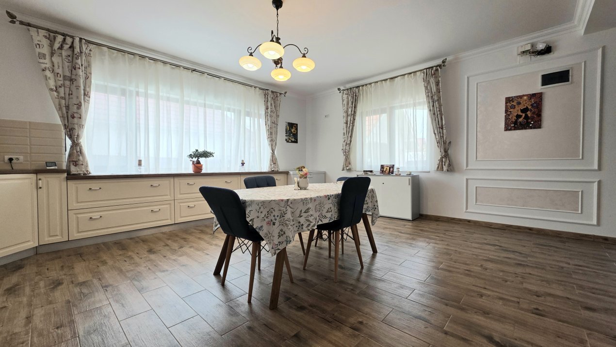Vila are finisaje moderne și se vinde împreună cu mobilierul si electrocasnicele de bucătărie inclus în preț. Este o locuință gata de mutat, ideală pentru o familie care caută spațiu și siguranță.
