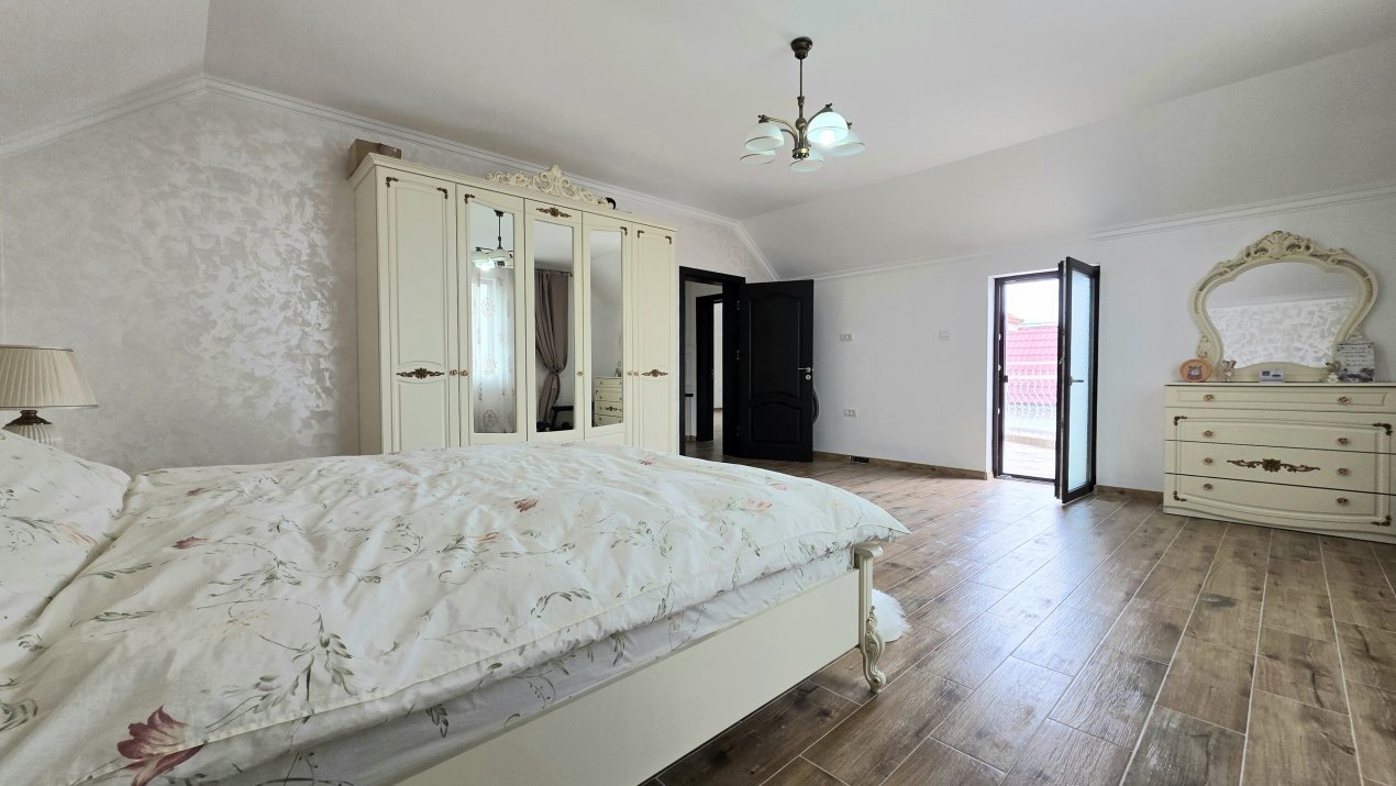 Etaj: o baie si 3 dormitoare, dintre care cel matrimonial are baie proprie și acces pe balcon.