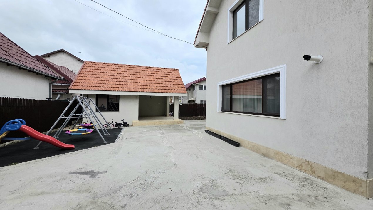 Curtea este amenajată pentru întreaga familie, având un loc de joacă pentru copii și o anexă tip bucătărie de vară cu terasă proprie. De asemenea, în interiorul curții se pot parca două mașini.
